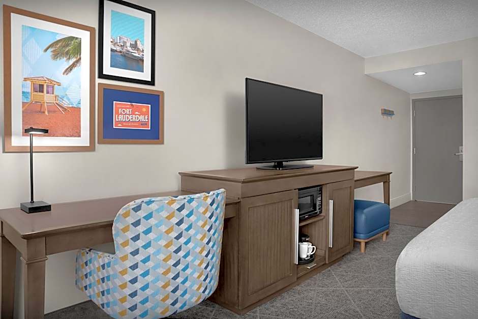 A microwave, small refrigerator, and a 32-inch flat-screen TV are featured in this guestroom.